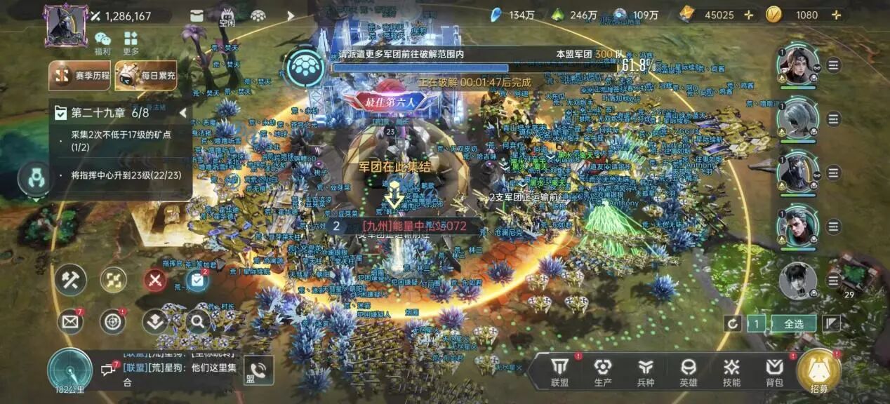 荒盟也抱著一雪禍神之恥的心,與帝盟聯(lián)動。此戰(zhàn)荒盟動員充足,但翻地難度確實很大,九州在高戰(zhàn)堡的上方疊航母陣,成功阻止荒盟的進攻,讓荒盟提前一天的動員與幾個小時的血戰(zhàn)毫無收獲。