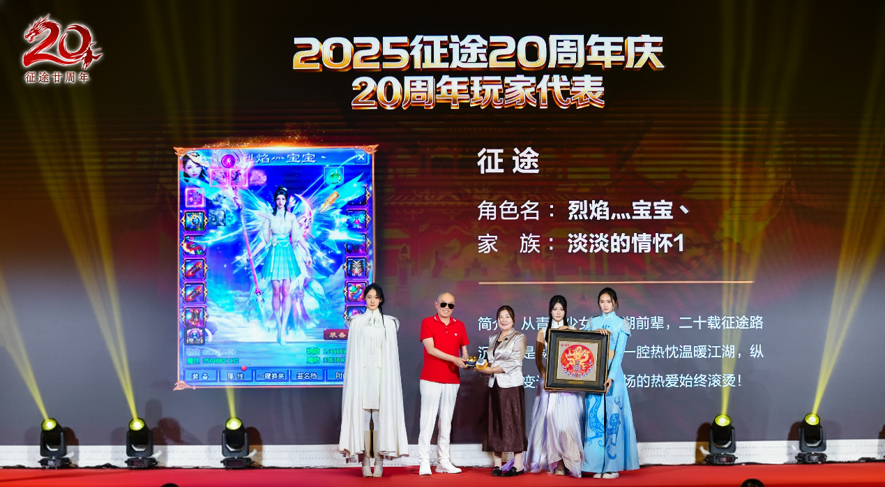 陪伴征途的玩家千千萬萬,受邀到場的每位榮耀玩家都為征途歷程留下了濃墨重彩的一筆,在接下來的榮耀頒獎環(huán)節(jié),九款征途游戲為共計60余名榮耀玩家頒發(fā)20周年特別獎項。