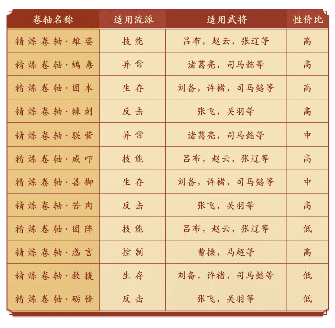 以下是各個(gè)特技卷軸的購(gòu)買推薦: