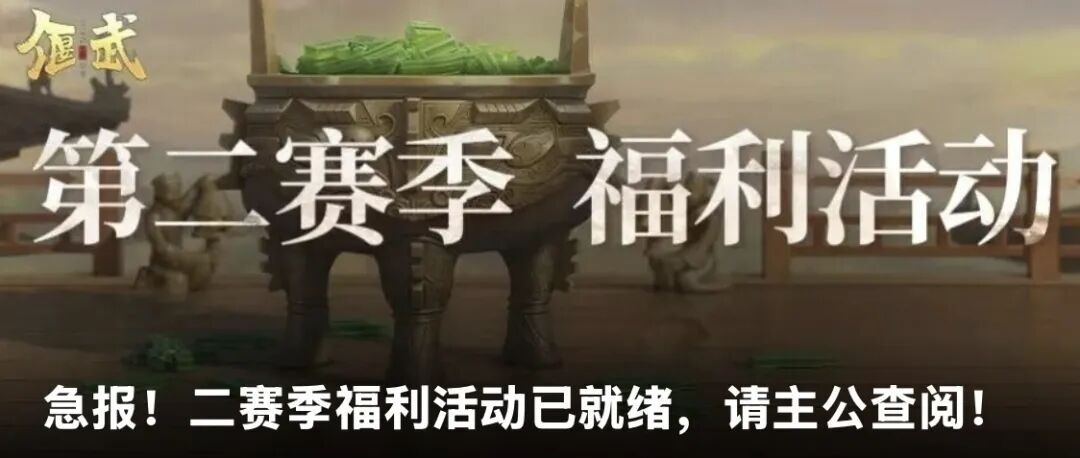 急報(bào)!二賽季福利活動(dòng)已就緒,請(qǐng)主公查閱!