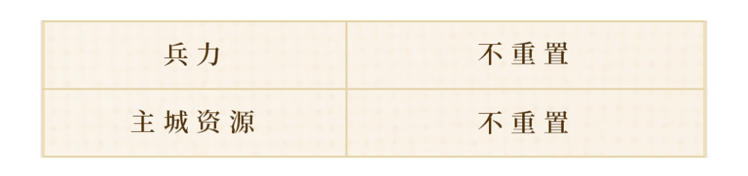 阿武提示:主公們要尤其注意兵力和主城資源這些內(nèi)容是保留的,要盡量囤積兵力和資源以及加速道具來(lái)讓主公在二賽季的開(kāi)荒中快人一步。